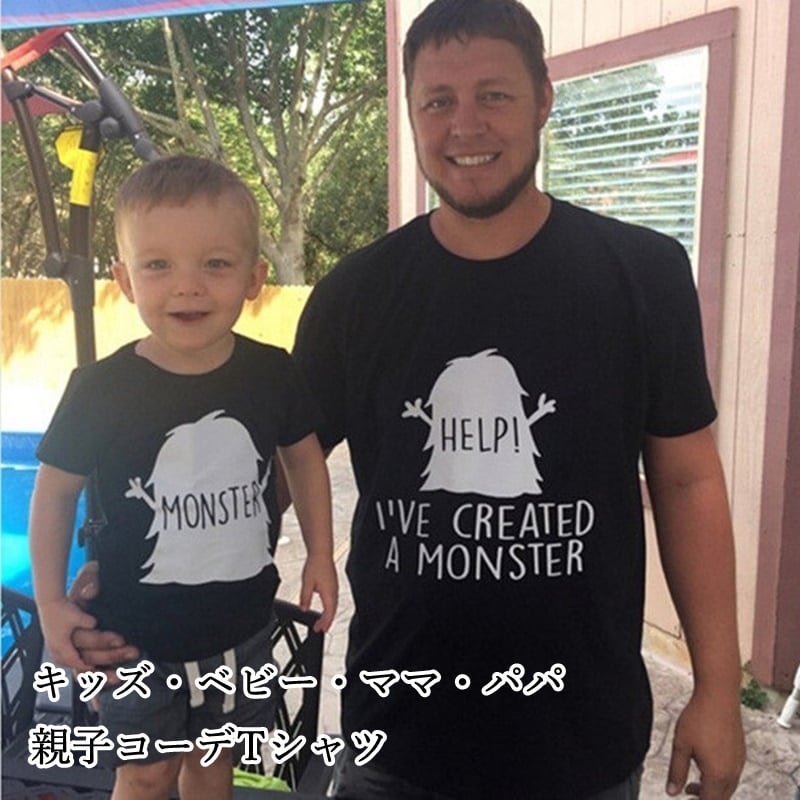 Tシャツ 親子コーデ 女の子 男の子 レディース メンズ キッズ ベビー ママ パパ モンスター ブラック 60-130cm S M L XL 2XL 3XL リンクコーデ YSK88 | 海外子供服専門通販サイト リーファ